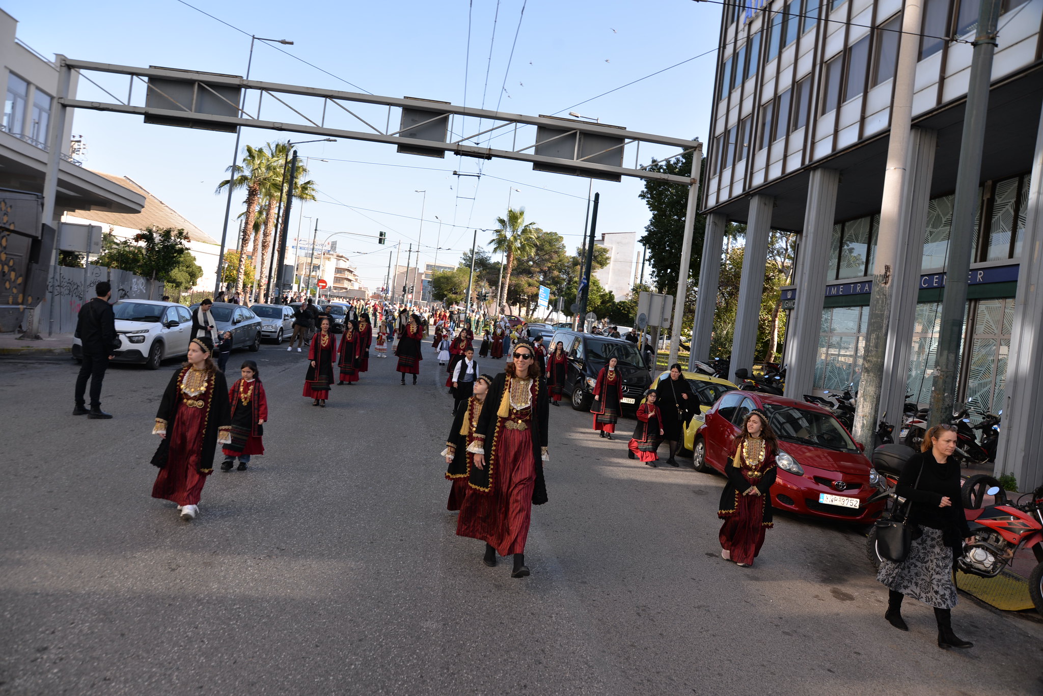 Στήν συνέχεια ξεκίνησε λαμπρή λιτανευτική πομπή μέ τήν συμμετοχή τῶν ὡς ἄνω Ἀρχιερέων καθώς καί τοῦ Σεβασμιωτάτου Μητροπολίτου Μεθώνης κ. Ἀμβροσίου, πλειάδος Κληρικῶν καί Μοναχῶν, τῶν φιλαρμονικῶν τῶν Δήμων Πειραιῶς, Ἀσπροπύργου καί τοῦ Πυροσβεστικοῦ Σώματος καθώς καί ἑκατοντάδων νέων ἐνδεδυμένων μέ ἐκκλησιαστικές καί παραδοσιακές ἐνδυμασίες.