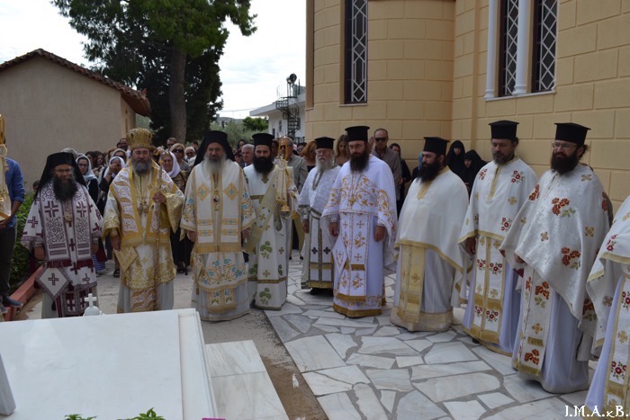 Τὸ πρωὶ τῆς Τετάρτης, στὴν Θεία Λειτουργία προΐστατο ὁ Σεβ. Ἀττικῆς καὶ Βοιωτίας κ. Χρυσόστομος, μὲ συλλειτουργοὺς τὸν Σεβ. Μητροπολίτη Δημητριάδος κ. Φώτιο καὶ τὸν Θεοφ. Ἐπίσκοπο Γαρδικίου κ. Κλήμεντα, τὸν ἐκφωνήσαντα καὶ τὴν ἑόρτιο Ὁμιλία. Ἔλαβαν μέρος ἀρκετοὶ Ἱερεῖς καὶ δύο Διάκονοι.